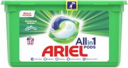 Ariel All in1 Mosókapszula, Mountain Spring, 33 db Az Ariel Allin1 rendkívüli tisztítóhatást nyújt, mindössze egyetlen apró kapszulába sűrítve. Az Ariel Allin1 PODS Mountain Spring mosókapszulák különleges, többrekeszes kialakítása stabilan, elkülönítve tárolja a hatóanyagokat a mosás kezdetéig, így szuperkoncentrált tisztítóhatást nyújtanak. Az Ariel mosószerkapszulák innovatív filmrétege víz hatására teljesen feloldódik, intenzív technológiájuk pedig sokféle folttal elbánik, adagolásuk pedig épp a megfelelő mennyiséget tartalmazzák a legkiválóbb Ariel folyékony mosószerből. A fokozott puhaság és a hosszan tartó frissesség érdekében a mosáshoz használjon Lenor öblítőt, valamint Unstoppables parfümgyöngyöket is. FIGYELMEZTETÉS: A termék az egészségre ártalmas lehet és súlyos sérüléseket okozhat. Az Ariel mosókapszulákat gyermekektől tartsa mindig elzárva. 1 kapszula 1 mosáshoz. A termék hatékony használata érdekében helyezze a mosókapszulát a dobba, majd halmozza rá a ruhákat. Allin1 Ariel PODS: 1. Eltünteti a foltokat 2. Óvja a színeket 3. Felfrissíti a textíliákat 4. Óvja a szöveteket 5. Hideg vizes mosáshoz is kiválóan alkalmasKimagasló folteltávolító hatás már az 1. mosás alkalmával, hideg vizes mosás esetén isRagyogóan tiszta és illatos ruhákat hagy maga utánRagyogó végeredményt nyújt még makacs foltok esetén isVízben oldódó filmrétegHasználata egyszerű: nem kell kimérni és kitölteni